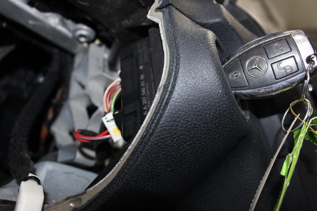 When a Mercedes EIS system starts to fail, the symptoms can be sometimes confusing, as there are many and one may not first think of the ignition switch as the source. For one – and being the one most obviously linked to the EIS directly– the key may insert  into the ignition but not turn. As well, it may turn, but not come out or release, meaning it is stuck and locked. Sometimes, the key will insert and turn but the vehicle will not start, despite showing signs of power. Other issues may be that the steering wheel remains in the locked position or that the shifter does not come out of park. In some situations, the vehicle may not go into park correctly and thus create additional start authorization issues. You may also find that the dash does not wake up as expected or that the alarm and general car locking behavior become erratic or unusual. Because the EIS is a security-related module, one failure can ripple outward and make several other systems look faulty even though the root problem begins with EIS drive authorization.